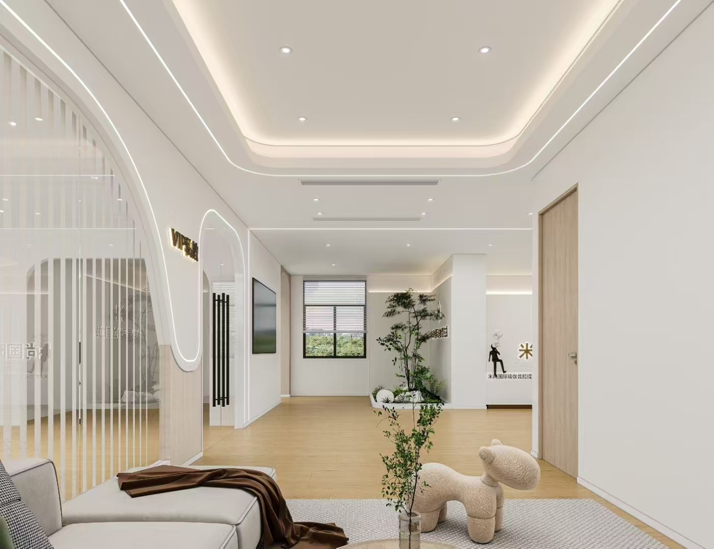 An application of COB LED strips for yoga fitness's interior design.