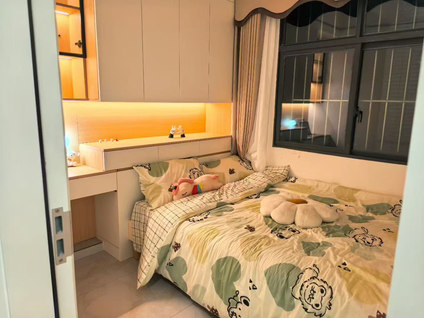 Usually a warm color is used for bed rooms because a warm color makes you feel more comfortable& realxed.