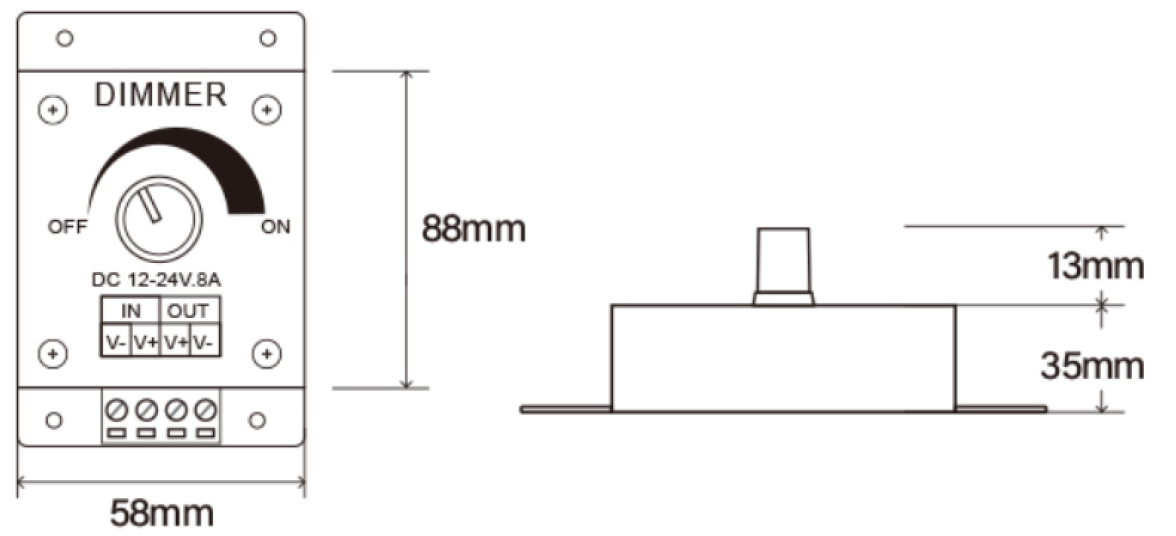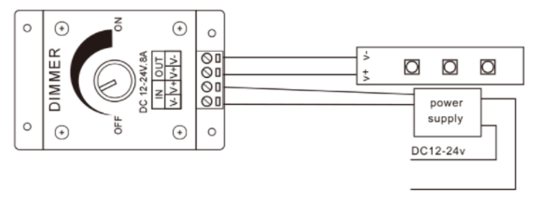 This single color LED dimmer is perfect for controlling DC12V or DC24V LED source such as LED strips, LED module , LED panel and etc.