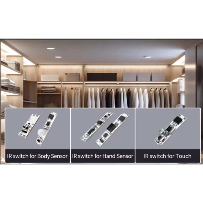 Under-Cabinet Lights: It is often installed inside aluminum LED profiles. The spring touches the plastic (PC) cover, allowing you to turn the kitchen lights on/off or dimming.