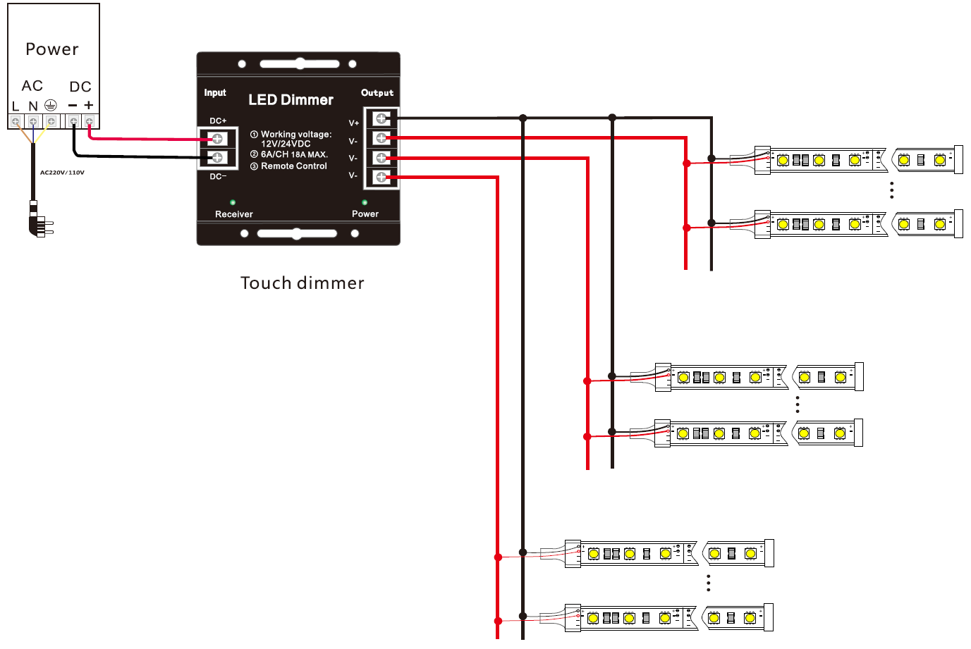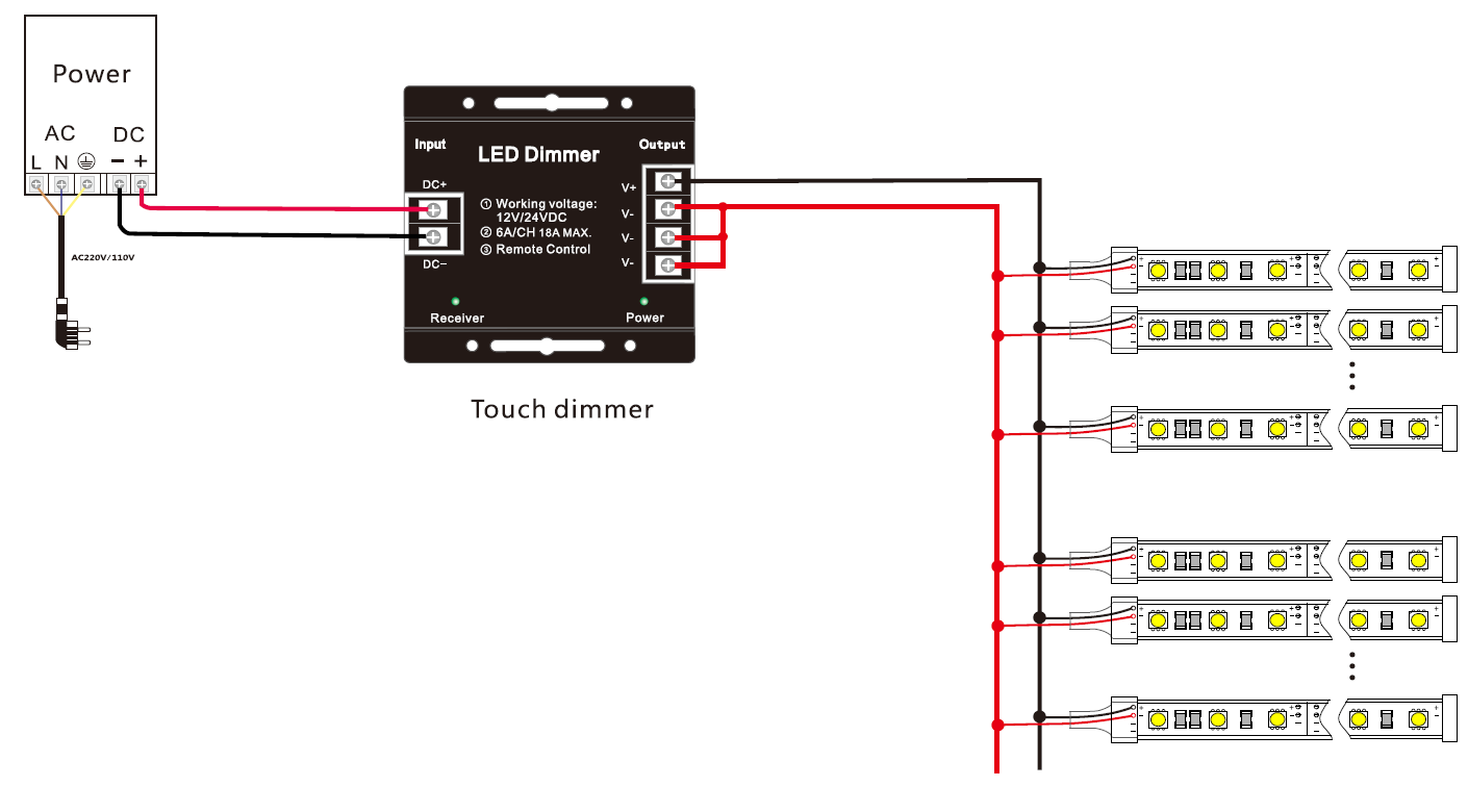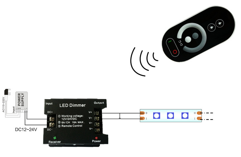 This single color LED dimmer is perfect for controlling DC12V or DC24V LED source such as LED strips, LED module , LED panel and etc.